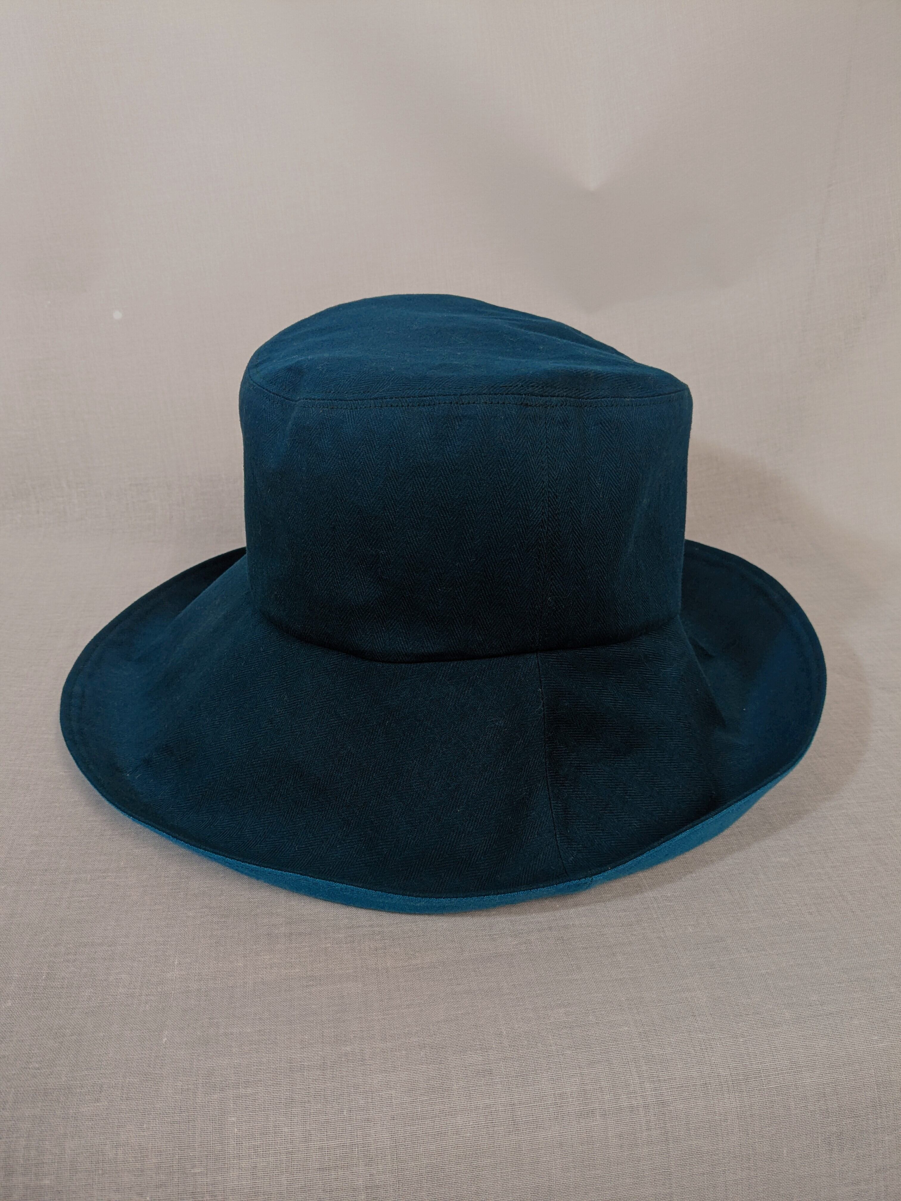 しっかりとしたつば広デザインが特徴のディープグリーンとターコイズのハットです。