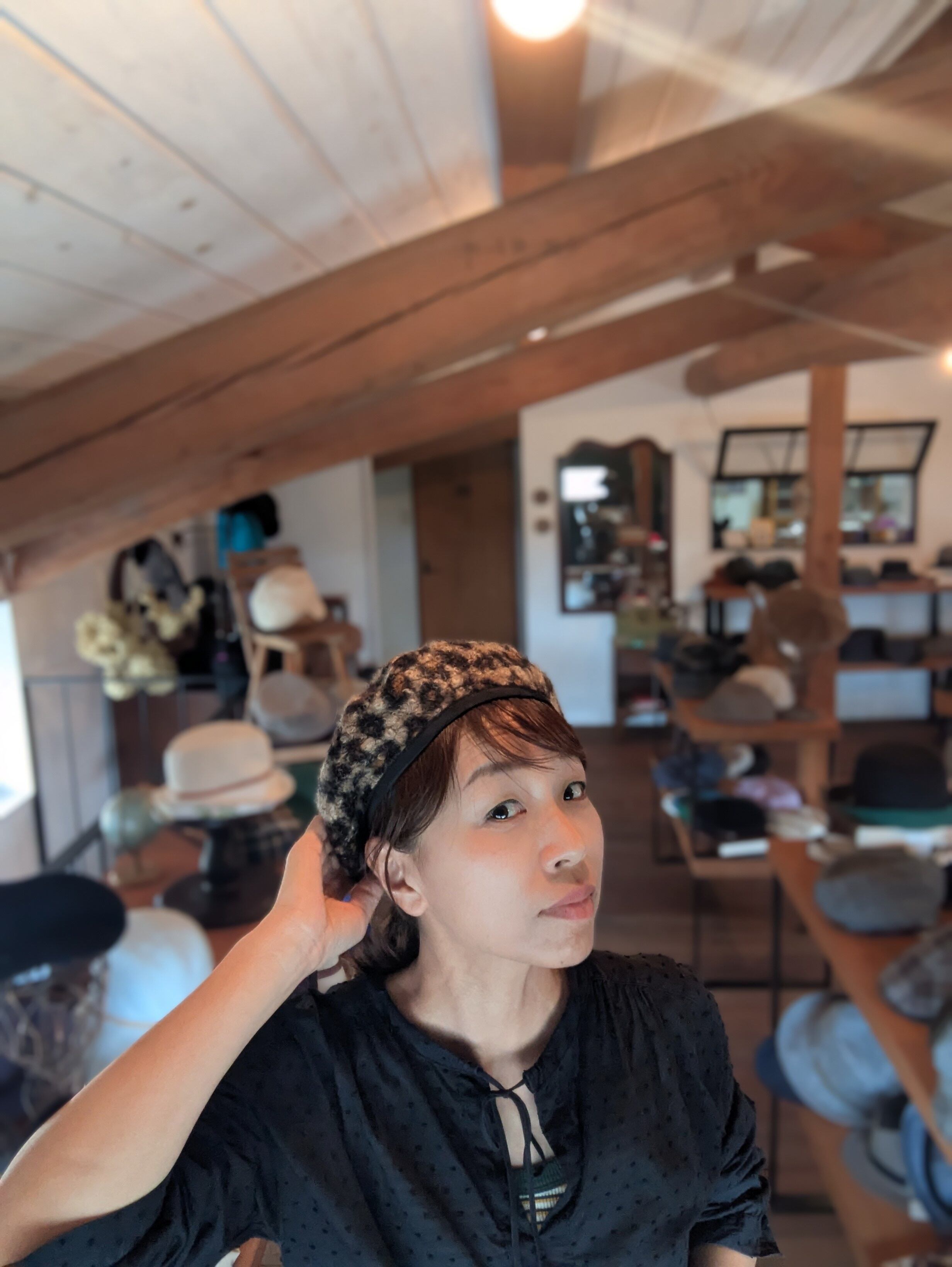 ヒョウ柄ですがくるんと巻いたファーの毛足が何ともかわいいベレー帽です。