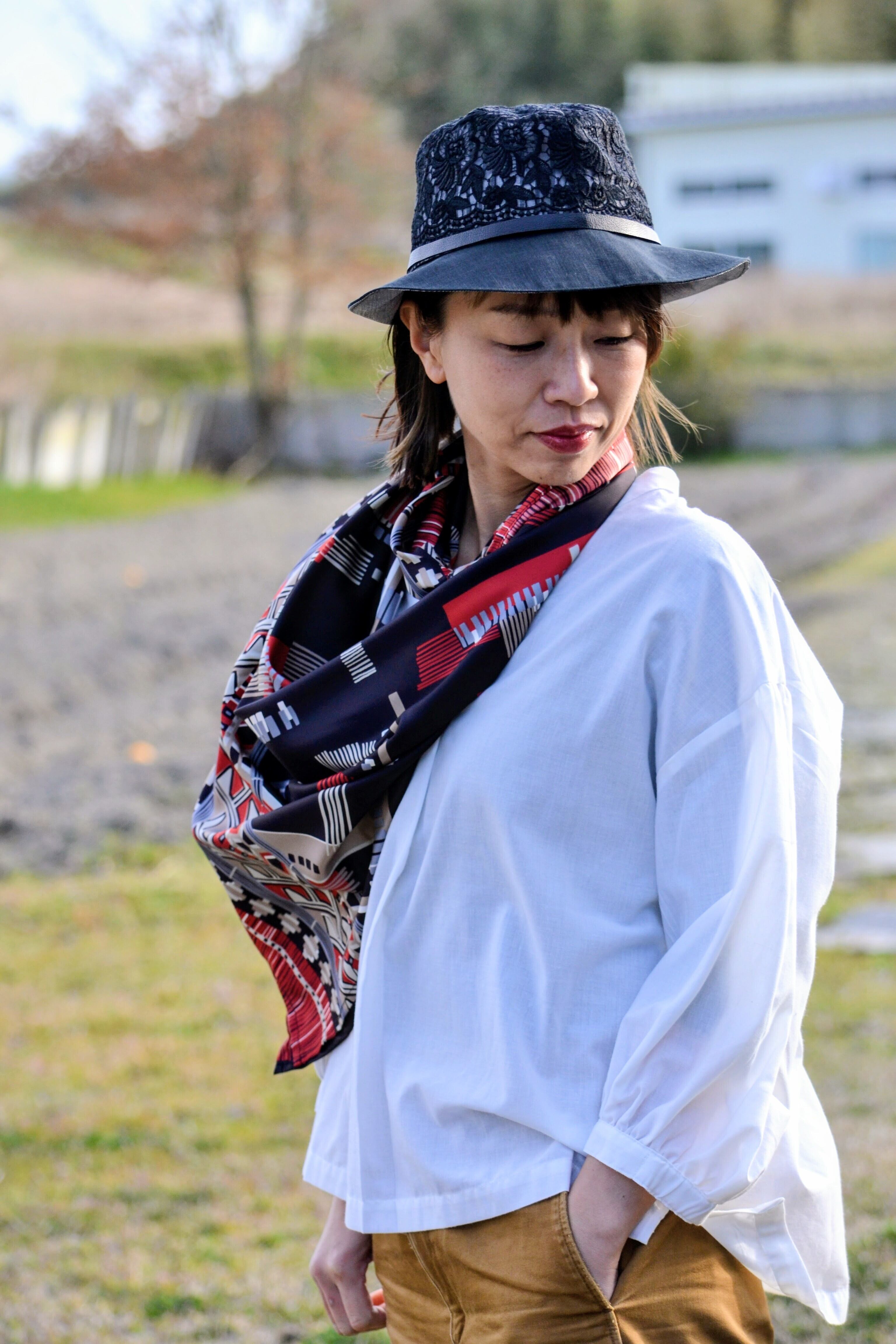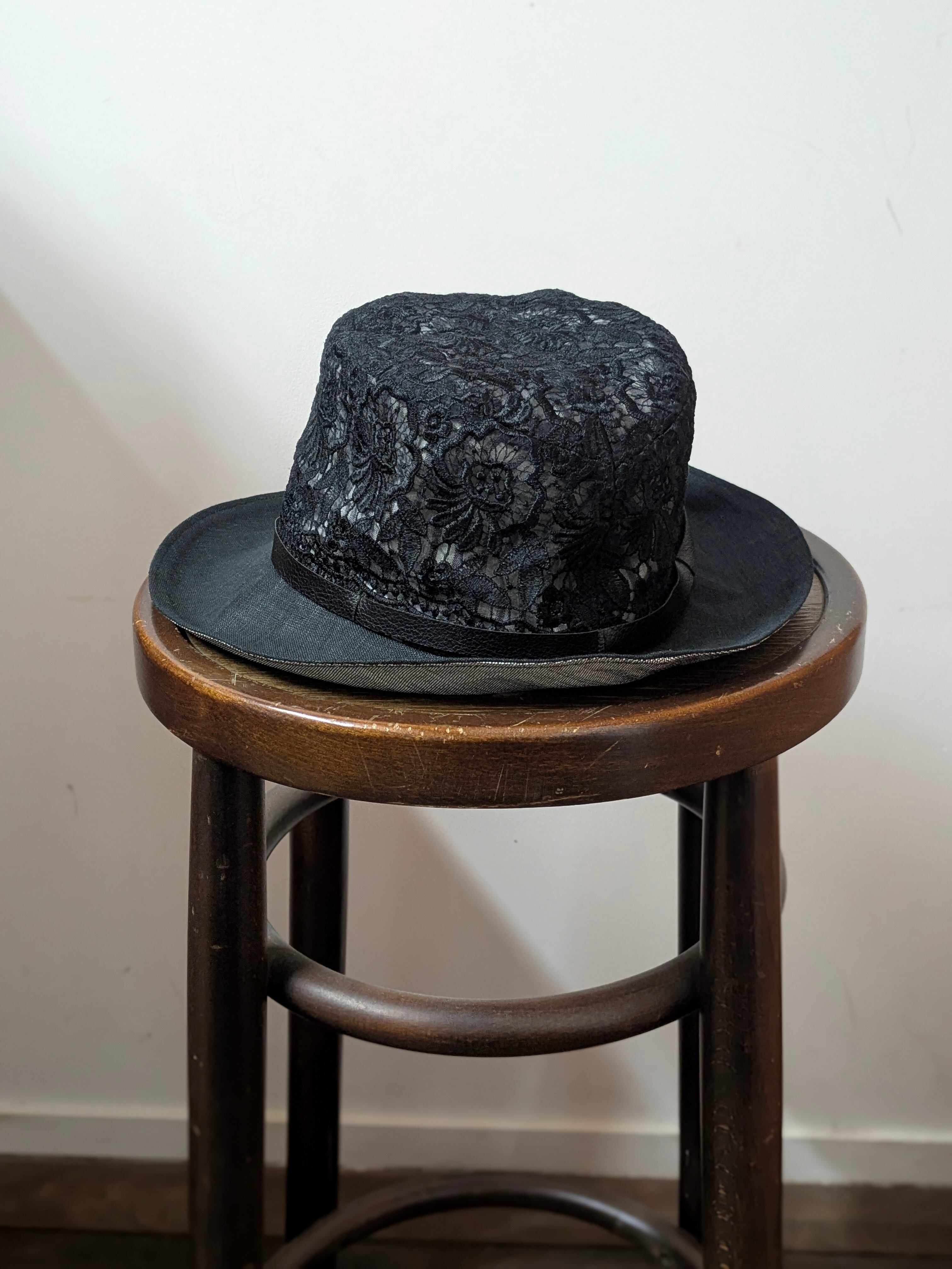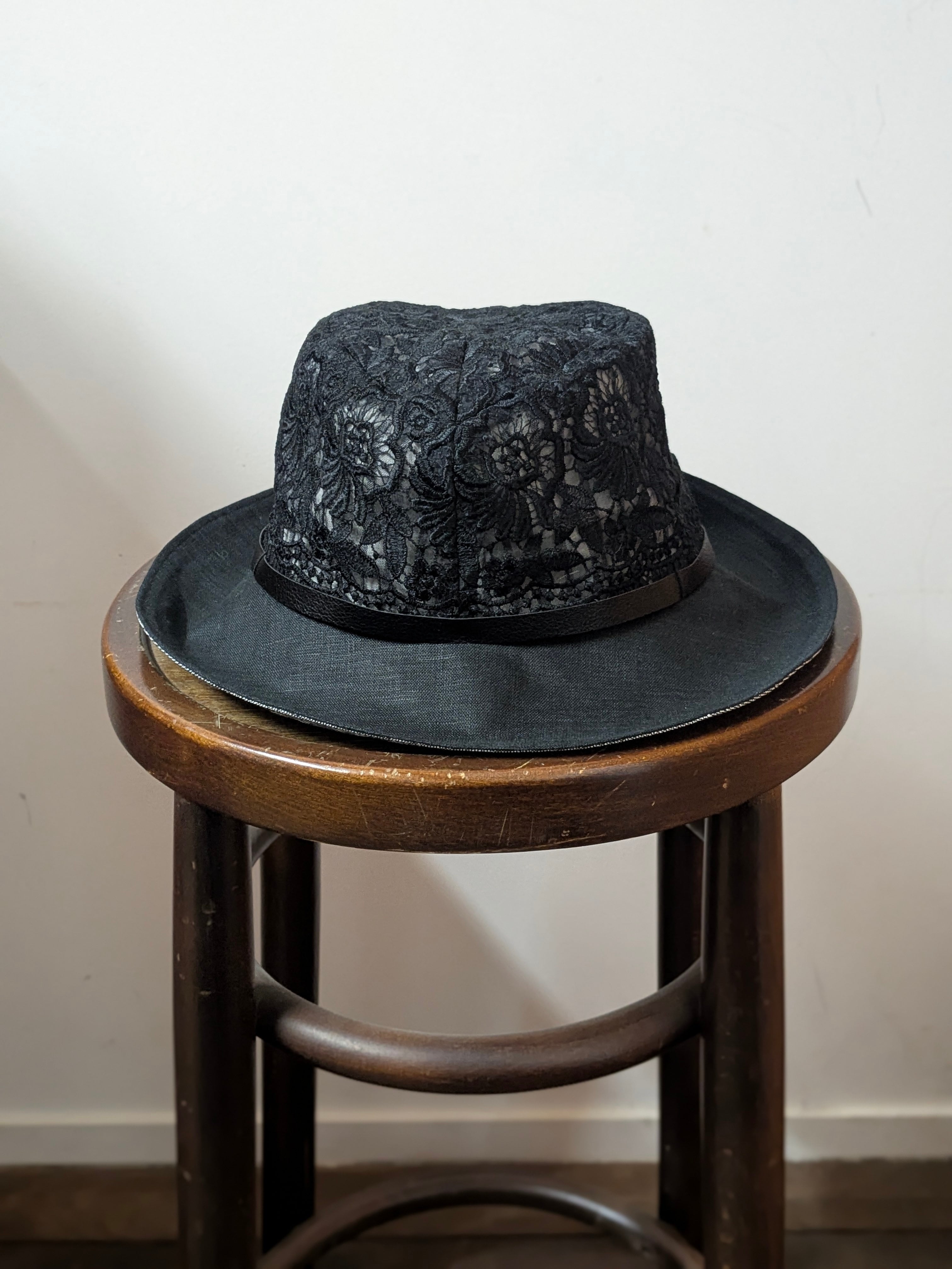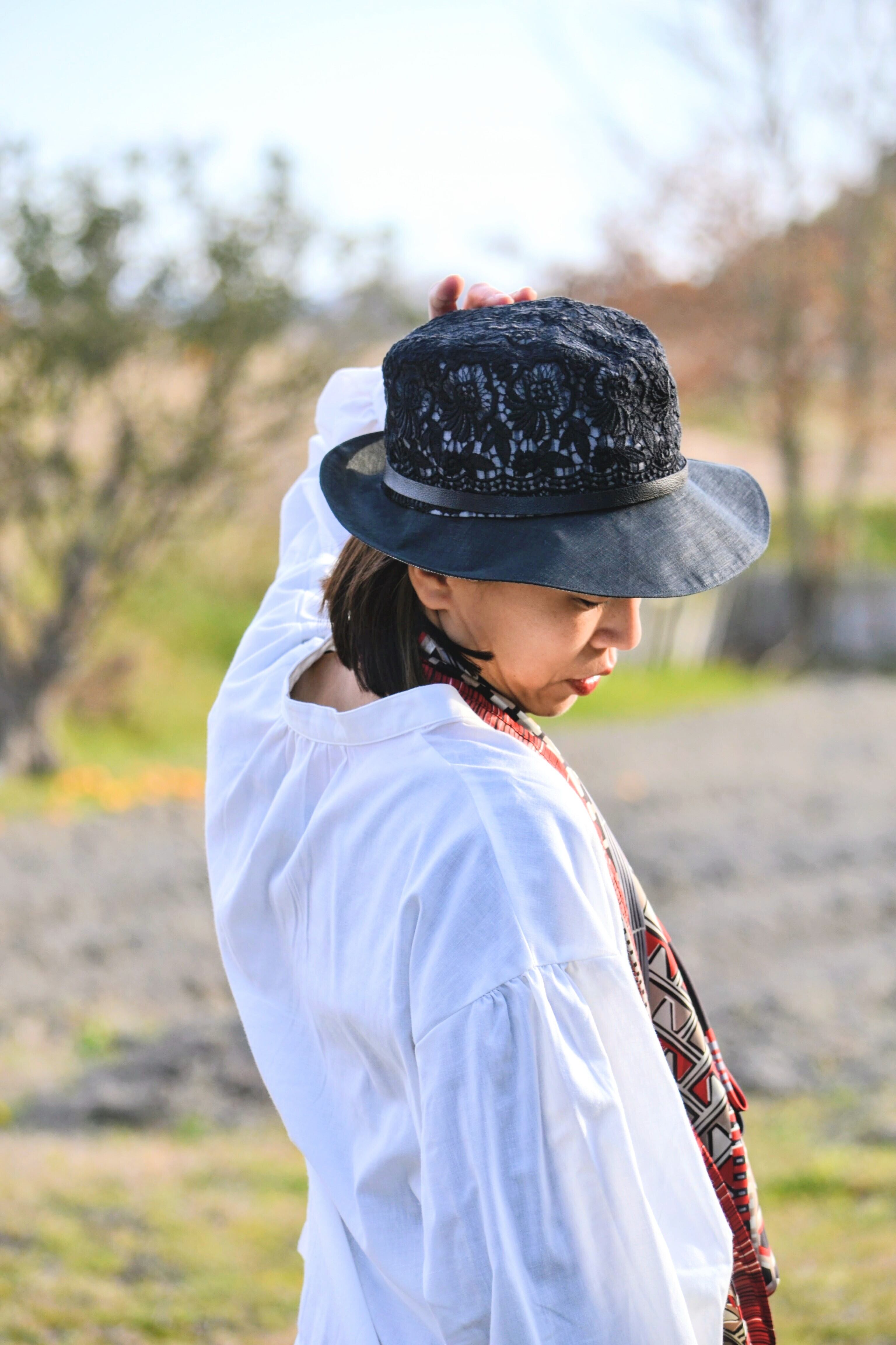 57cm 花柄刺繍つば広ハット