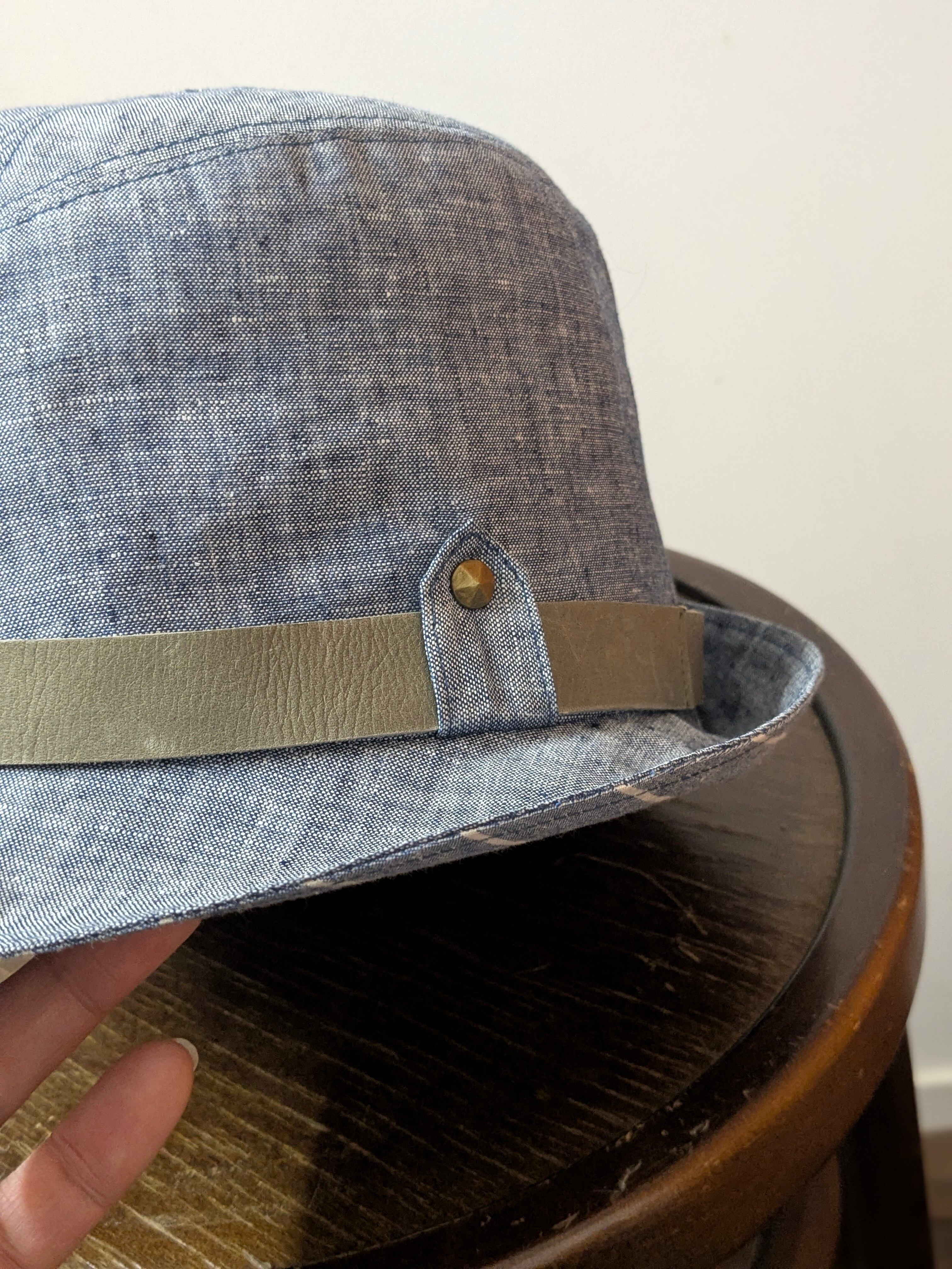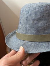 爽やかなライトブルーのコンパクトなツバのハットです。