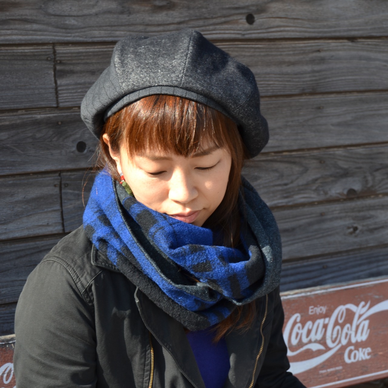 よく見ると2種類の違う柄のものを合わせて大きなサイズのベレー帽を作りました