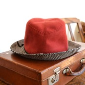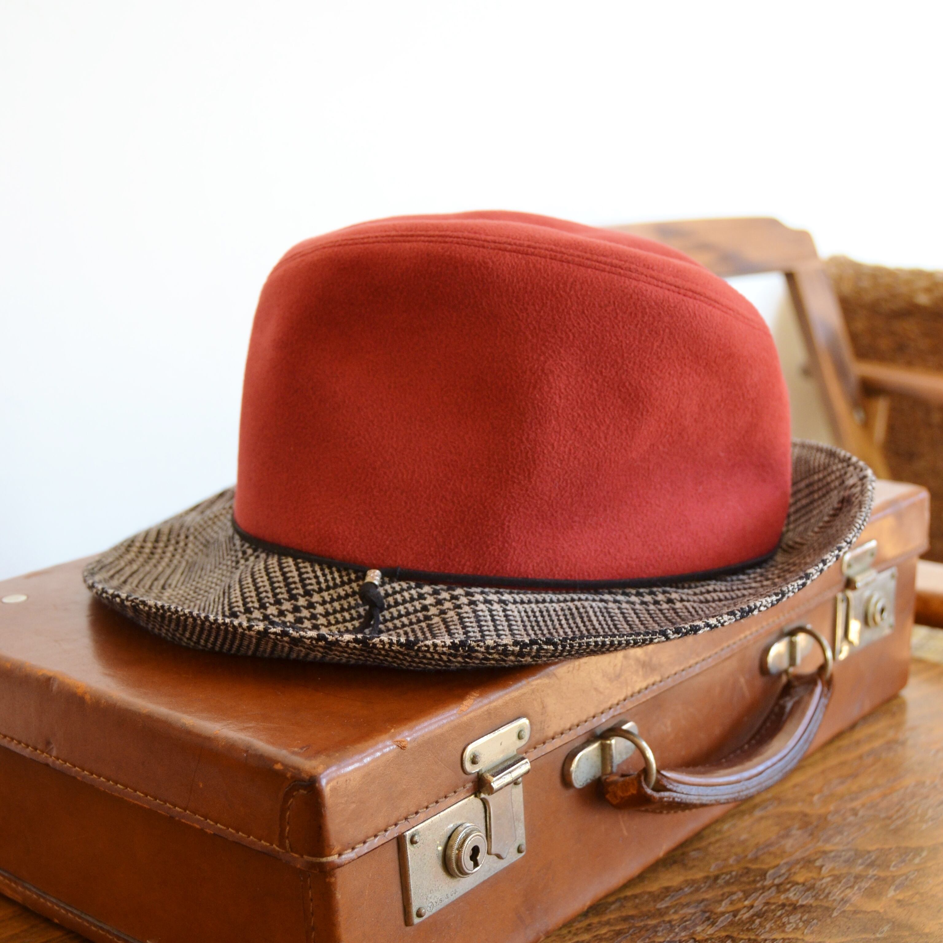 60㎝赤スエード+グレンチェックのツバ広ハット
