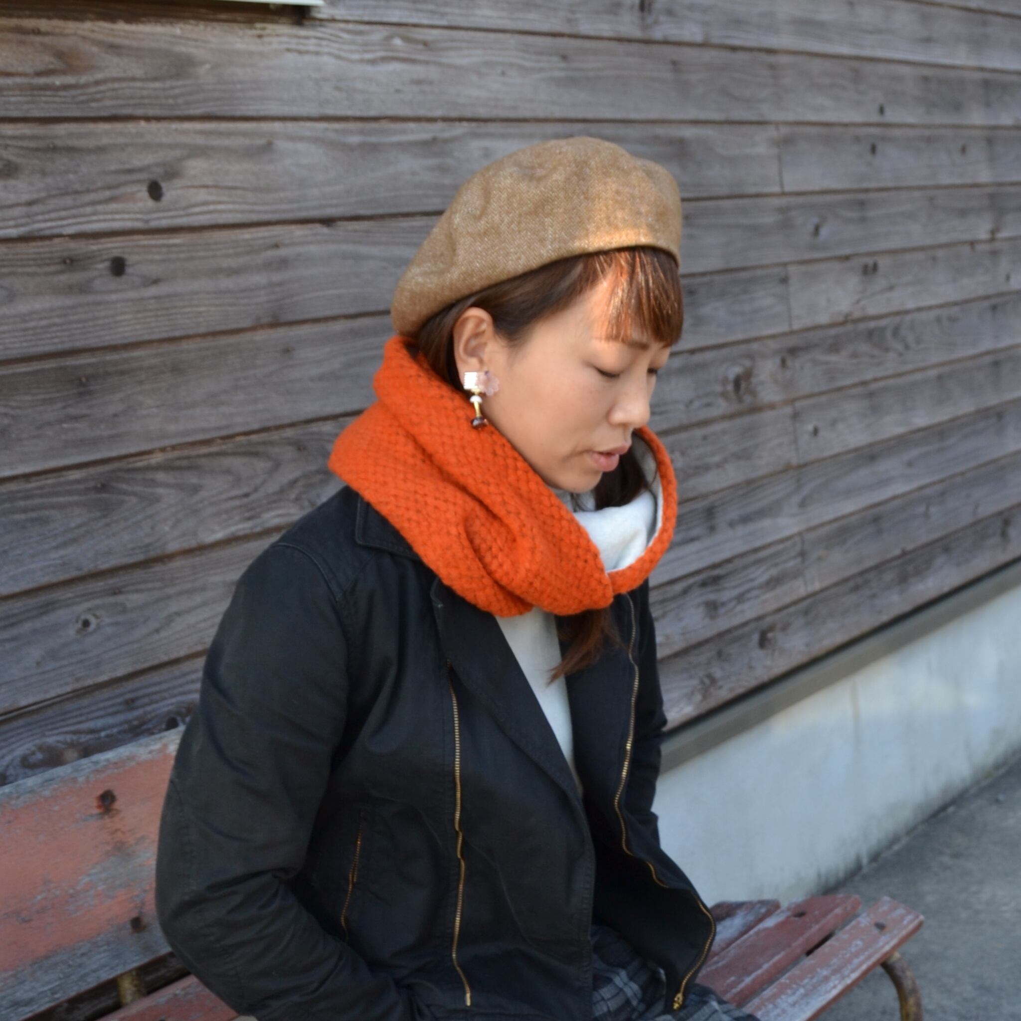 キャメルのヘリンボーン柄のベーシックなベレー帽です