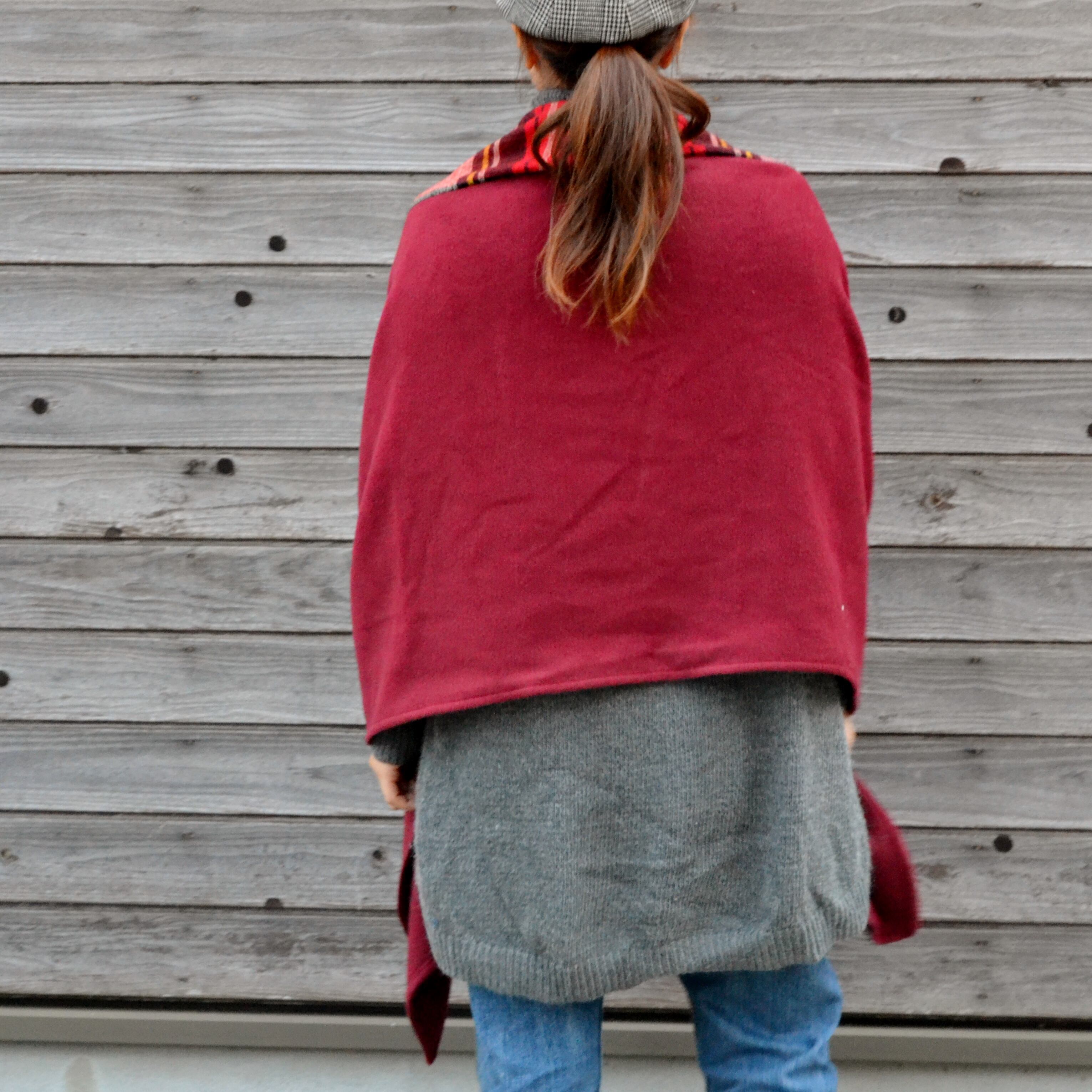 車で少し出かけるなど、コートを着るまでもない時に大活躍のケープです・