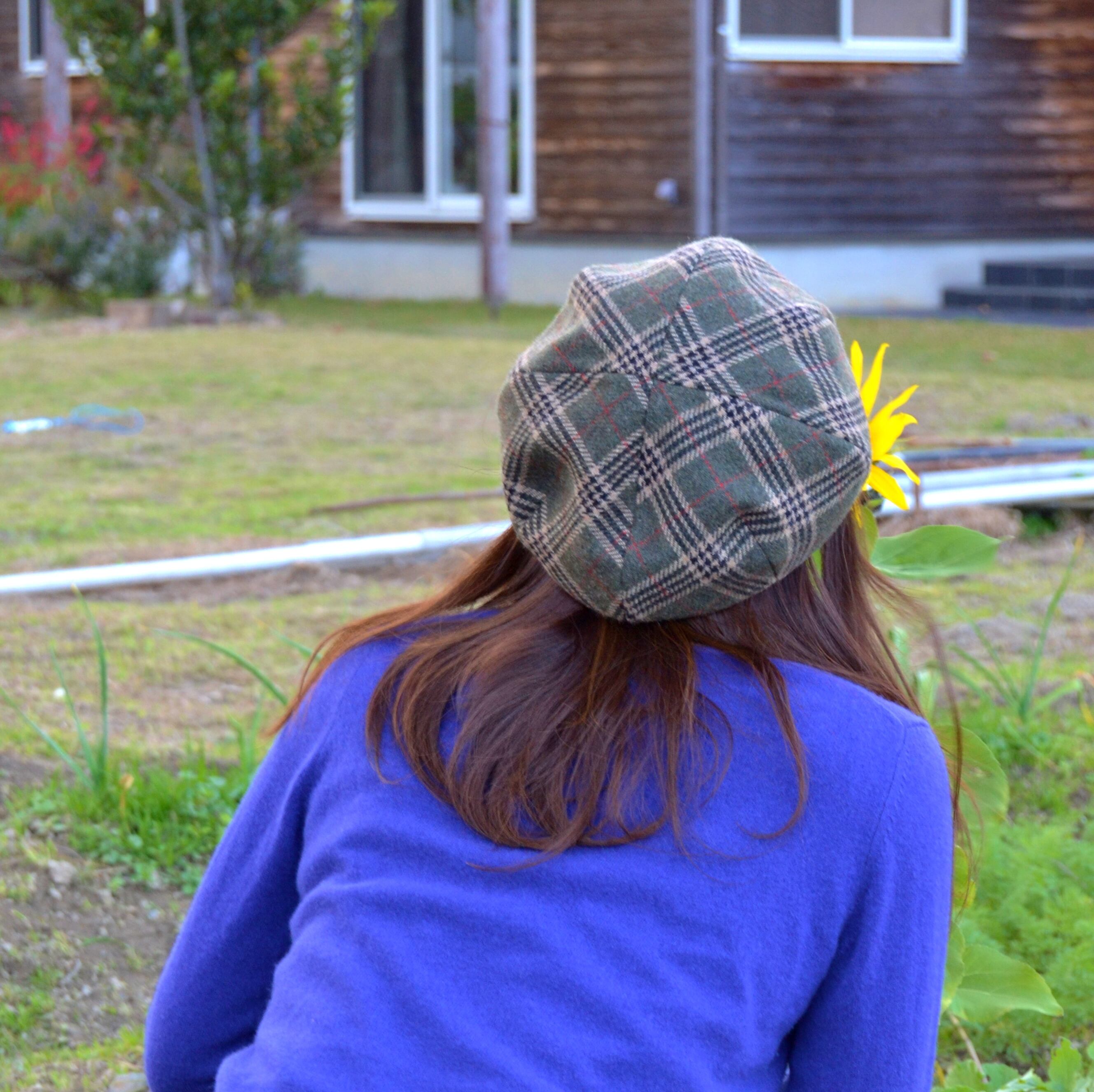 冬らしいウール素材のグリーン系チェック柄で作りました