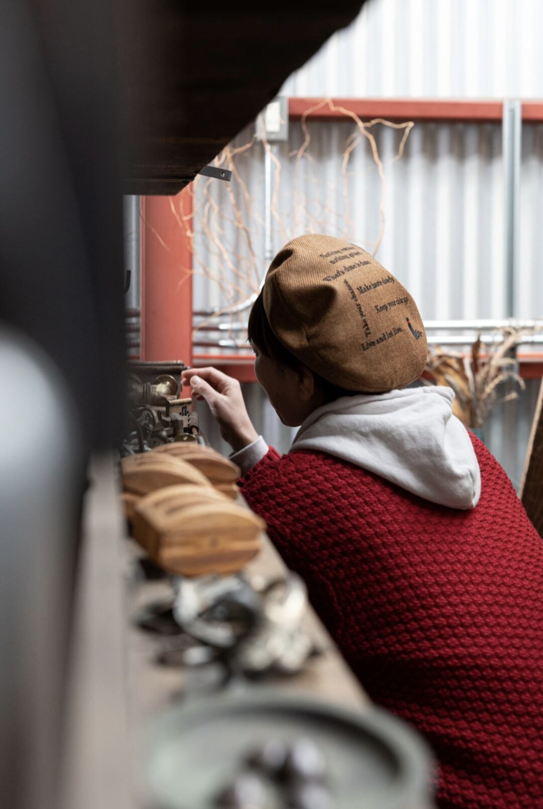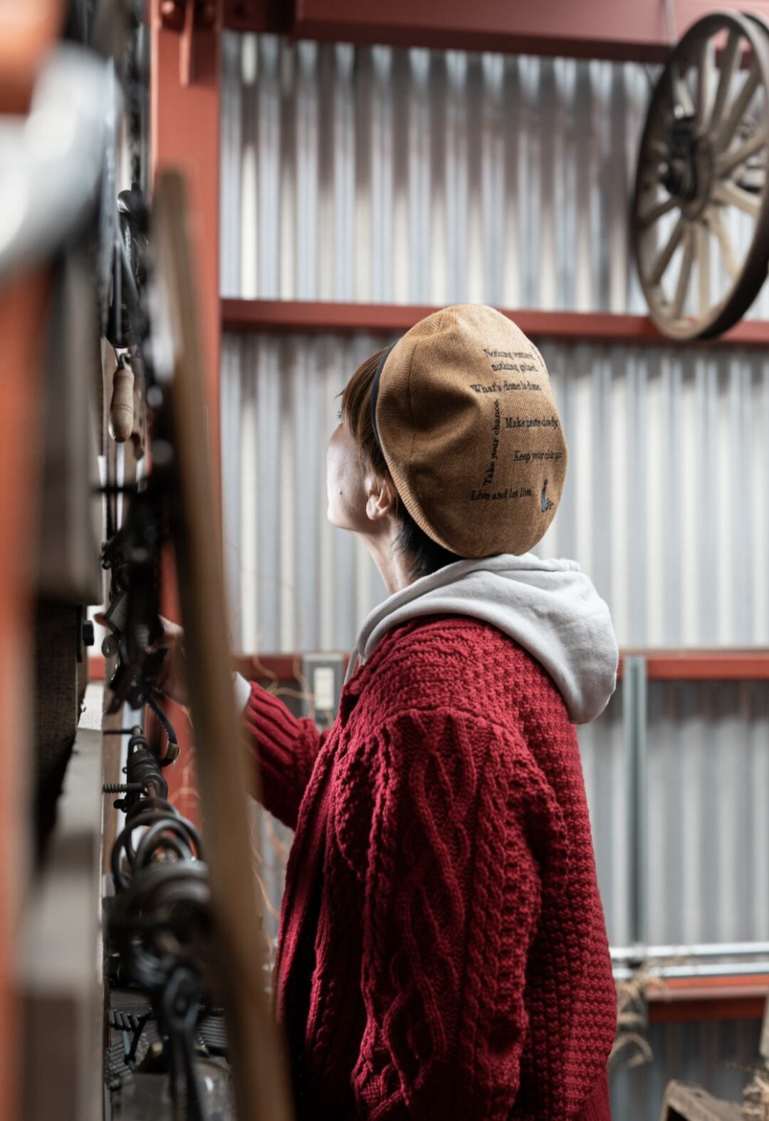 英語のことわざの刺繍が入った遊び心の効いたベレー帽です。