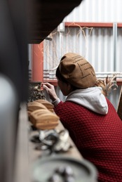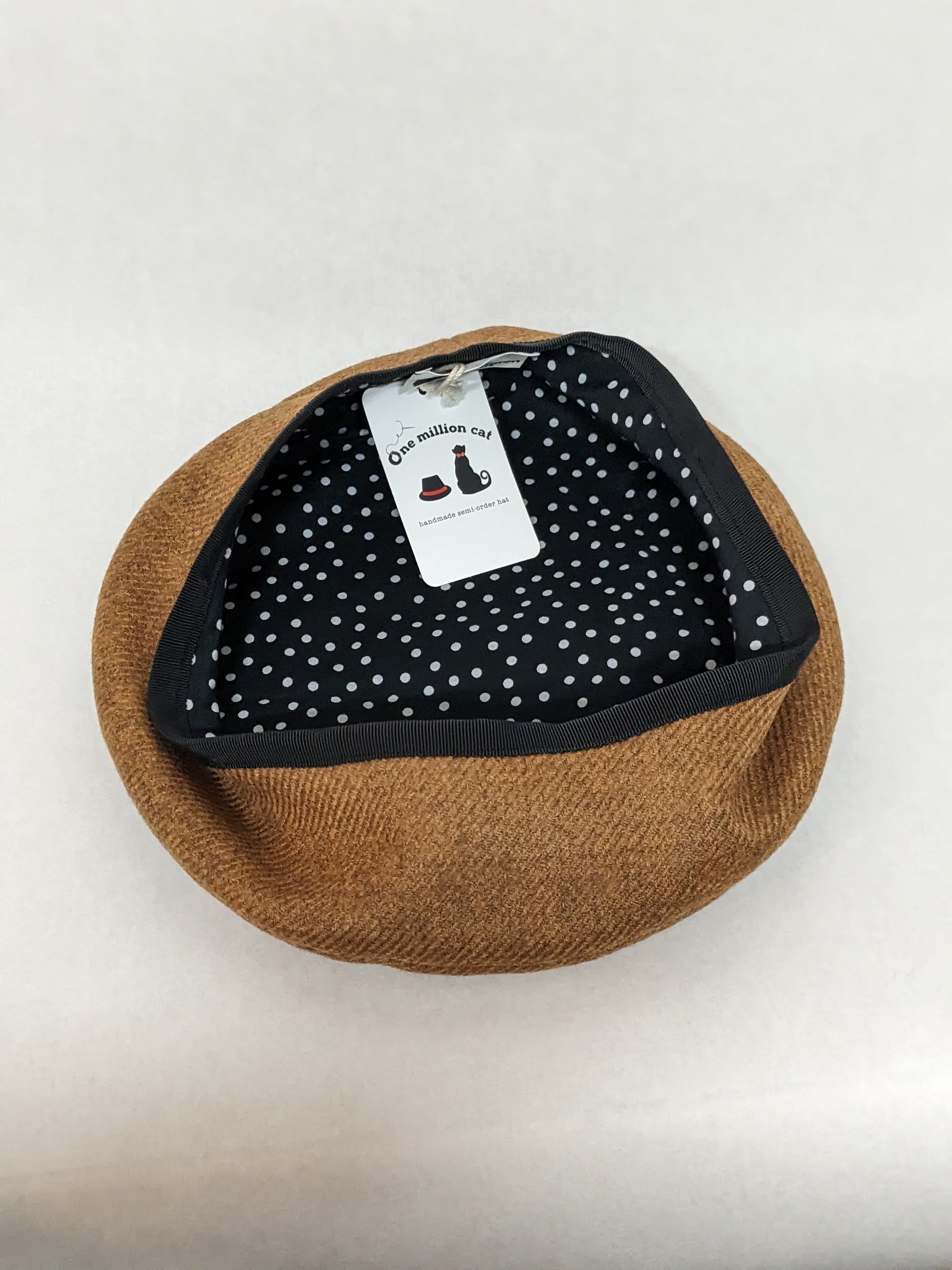 58.5cm キャメル刺繍入りベレー帽