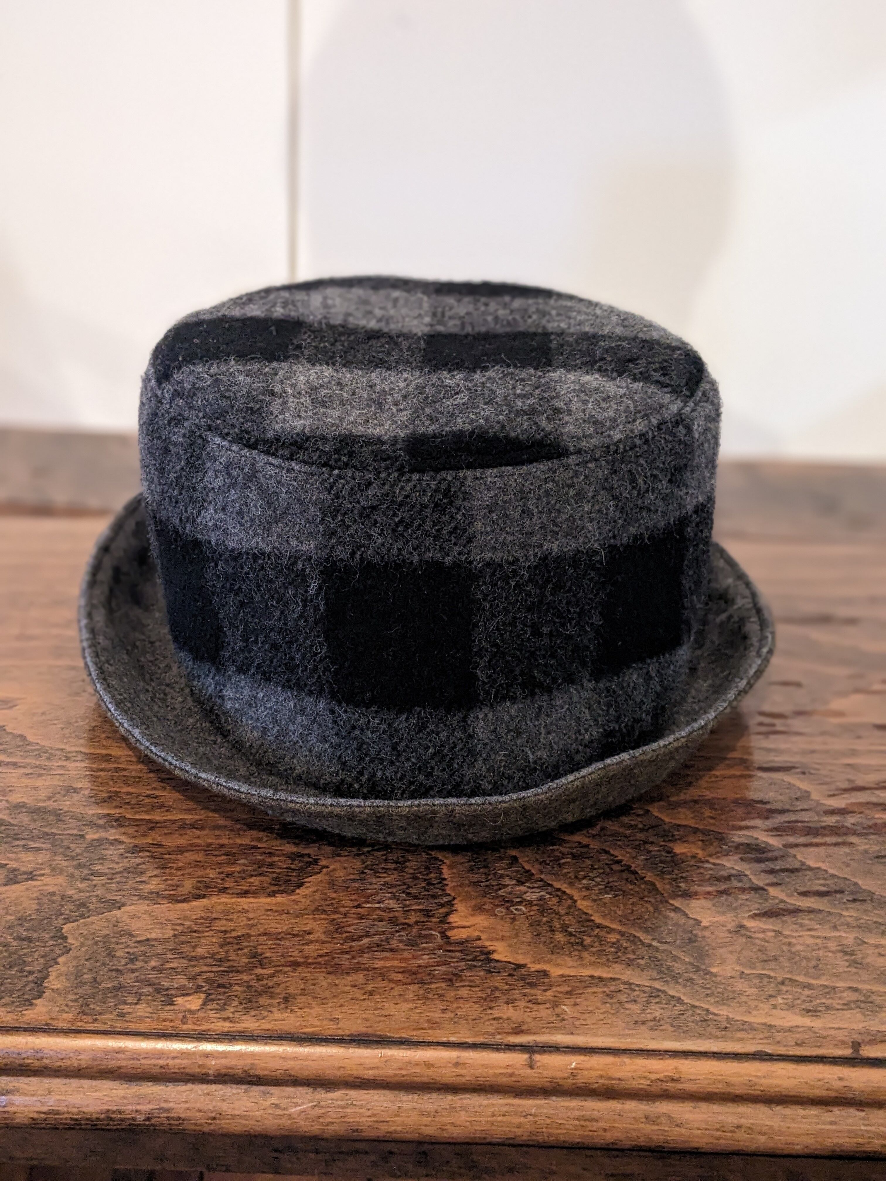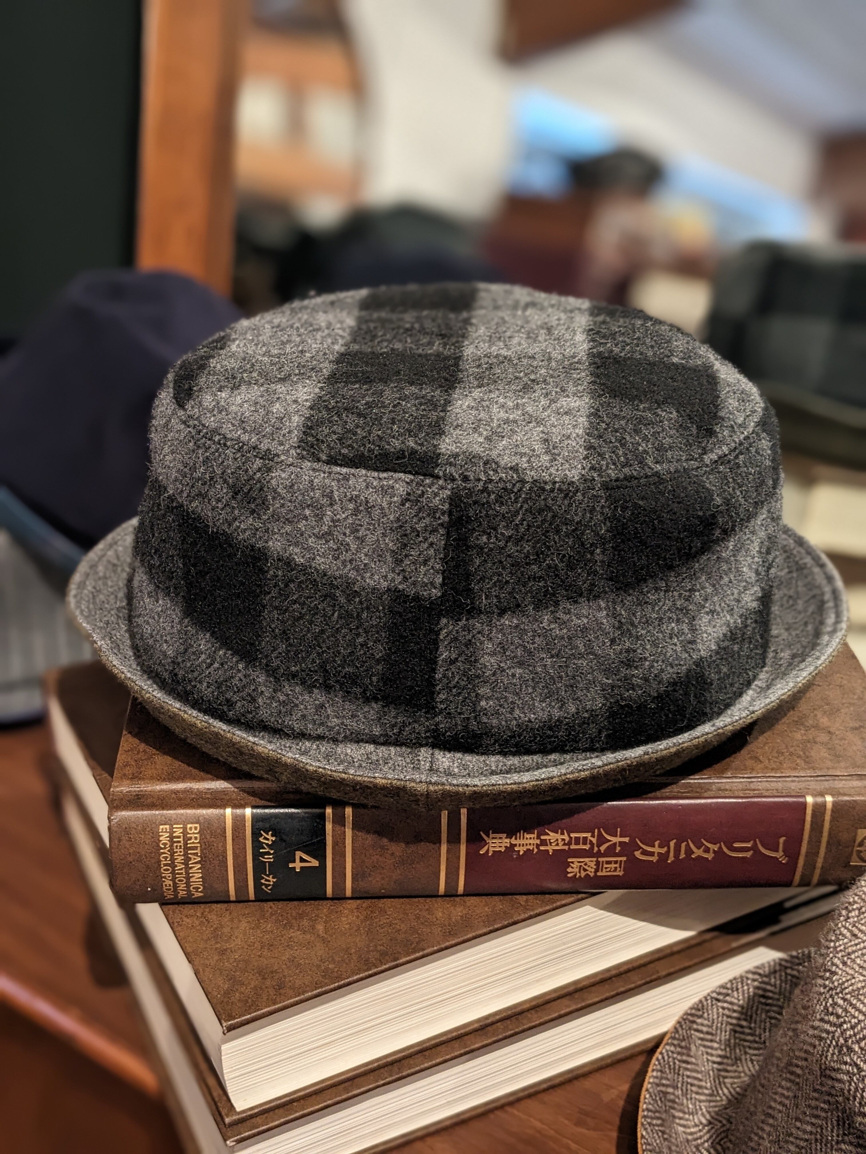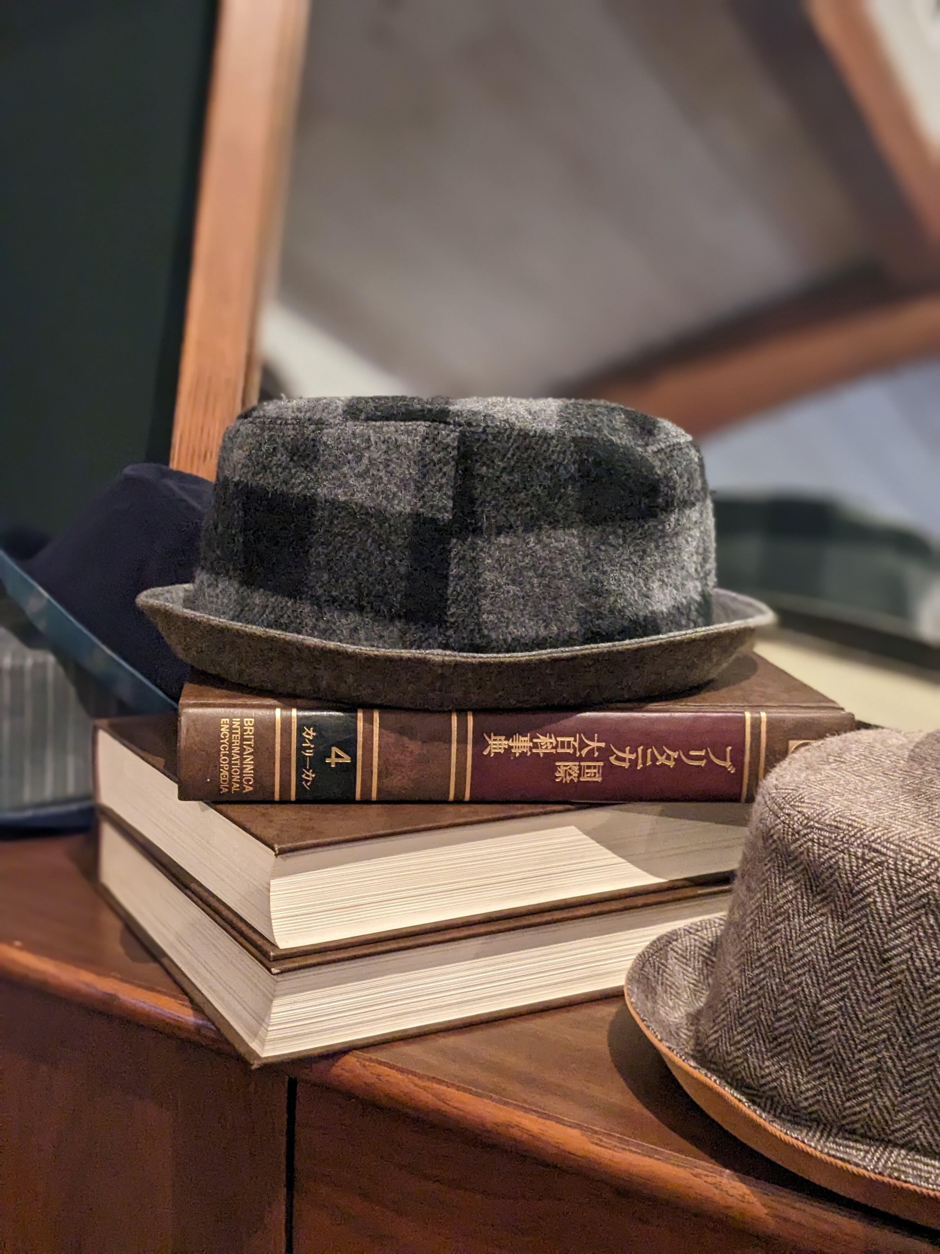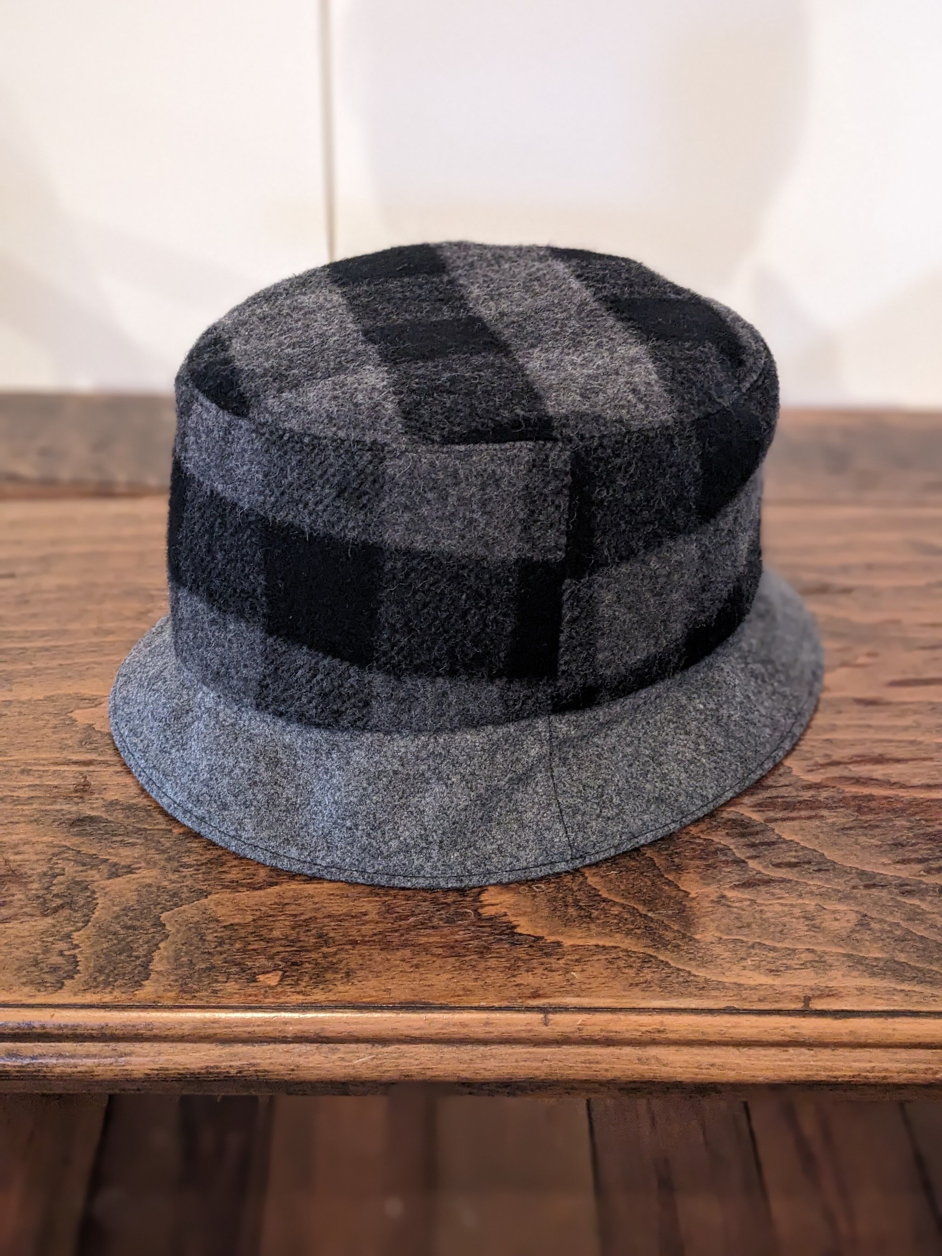 モノトーンのブロックチェックとツバ裏にはカーキを作ったカッコイイハットです。